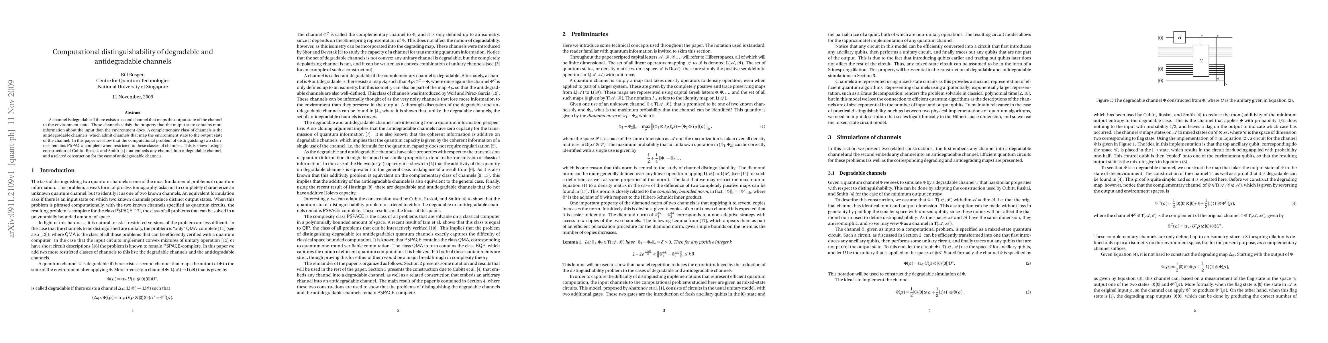 This paper demonstrates that distinguishing between degradable and antidegradable quantum channels remains a PSPACE-complete computational problem, using constructions that embed any channel into these classes. The study highlights the complexity of differentiating these channel types despite their distinct properties.
