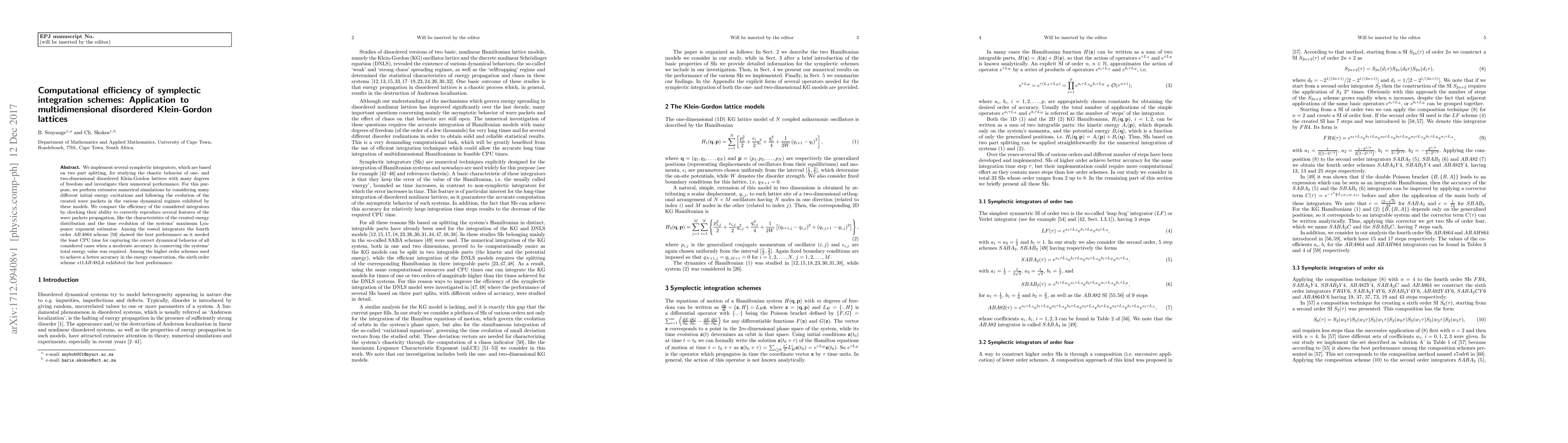 Researchers studied symplectic integration schemes for simulating chaotic Klein-Gordon lattices and found that high-order schemes like $ABA864$ and $s11ABA82_6$ perform better than lower-order schemes in capturing the system's behavior with moderate accuracy.