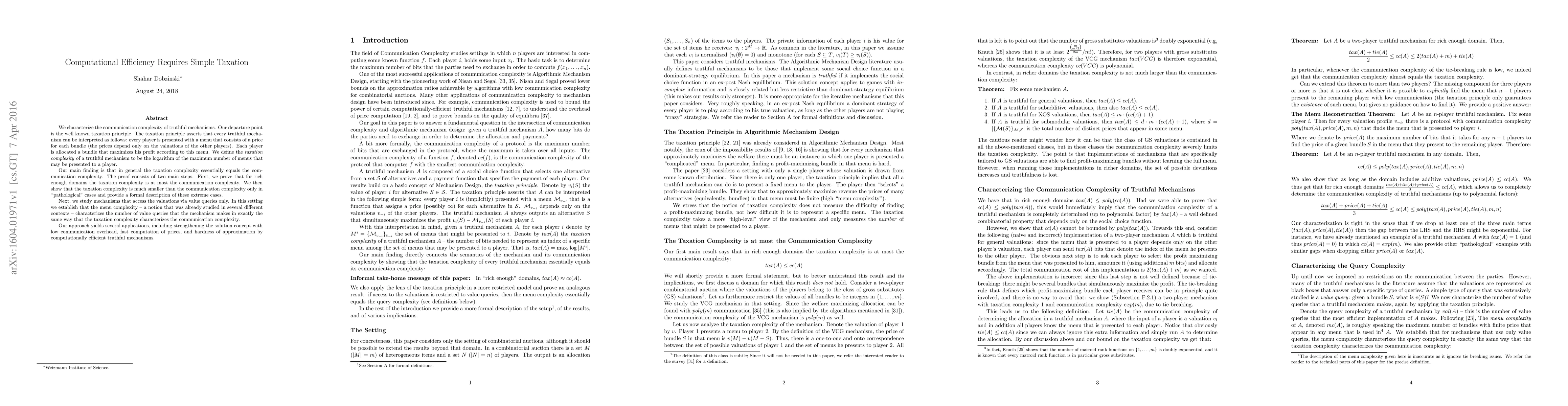 This paper investigates the relationship between the communication complexity and taxation complexity of truthful mechanisms, demonstrating that they are essentially equal in general. It also shows that mechanisms relying on value queries have a menu complexity that mirrors the communication complexity, providing insights into computational efficiency and low-overhead solutions.