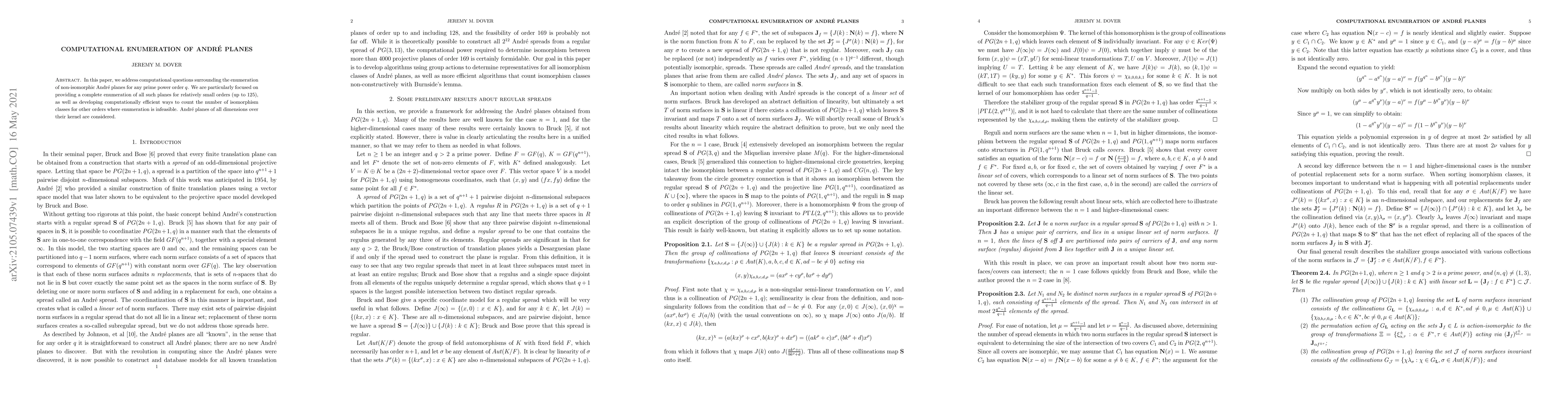 In this paper, we address computational questions surrounding the enumeration of non-isomorphic Andr\'e planes for any prime power order. We are particularly focused on providing a complete enumeration of all such planes for relatively small orders (up to 125), as well as developing computationally efficient ways to count the number of isomorphism classes for other orders where enumeration is infeasible. Andr\'e planes of all dimensions over their kernel are considered.