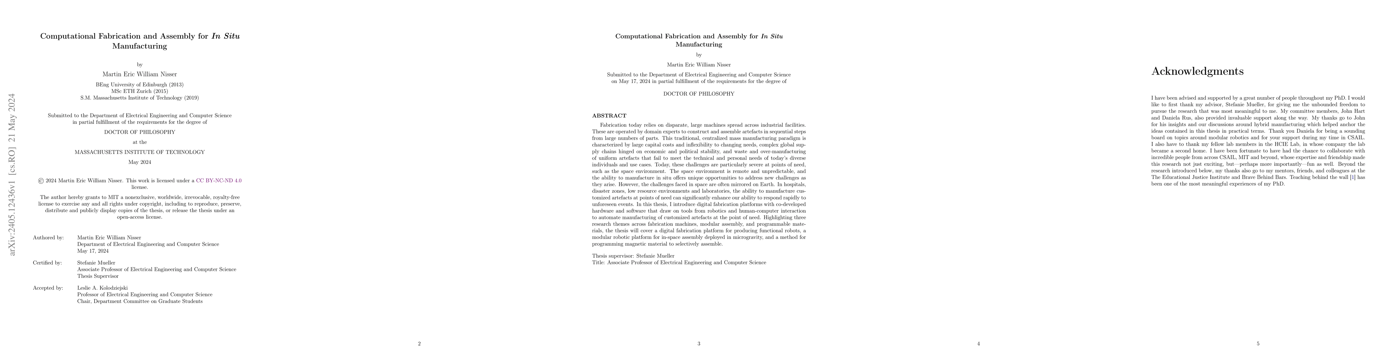 This research introduces digital fabrication platforms that automate the manufacturing of customized artefacts at points of need, addressing challenges in centralized mass manufacturing. The focus is on in situ manufacturing, especially in space, hospitals, and disaster zones, utilizing robotics and human-computer interaction to produce tailored solutions.
