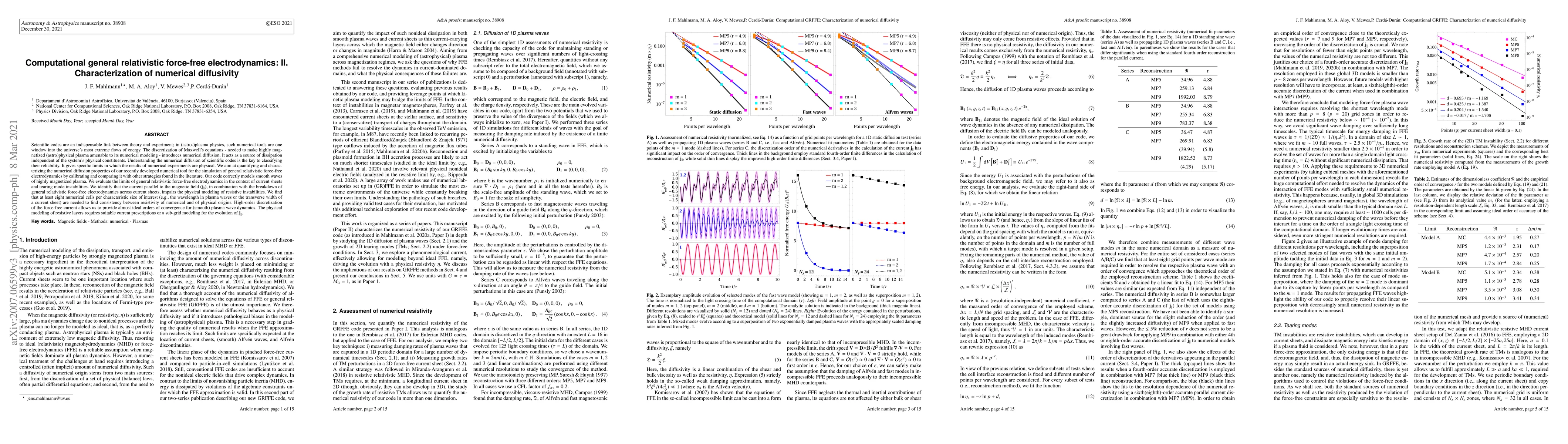 This paper quantifies the numerical diffusion in a computational tool for general relativistic force-free electrodynamics, identifying that at least eight numerical cells per characteristic size are needed for consistency. The study highlights the importance of high-order discretization and the need for suitable current prescriptions to model resistive instabilities accurately.