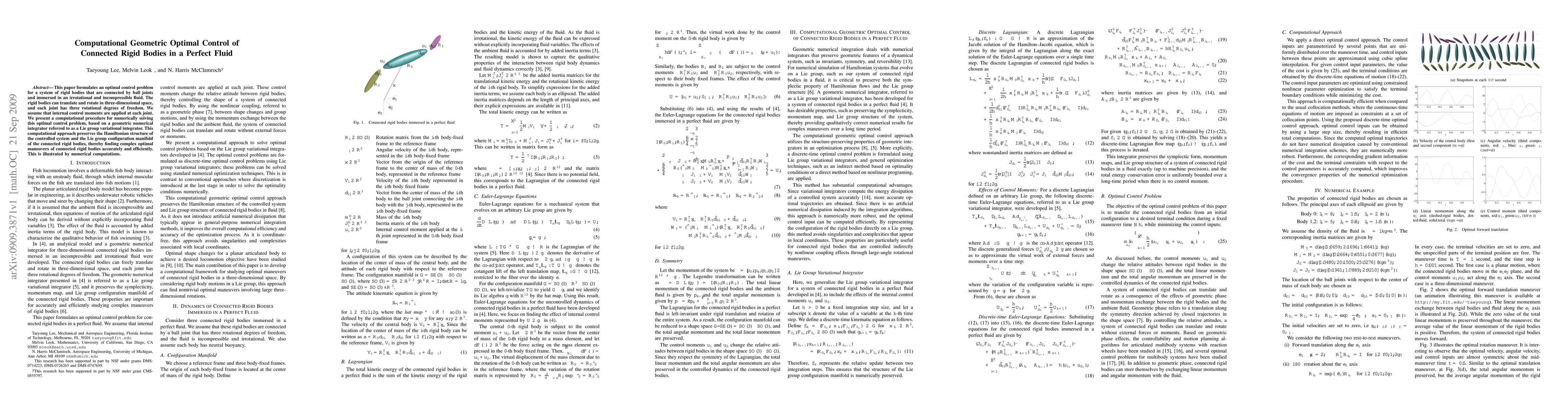 This paper proposes a computational method for optimal control of connected rigid bodies in a perfect fluid, using a Lie group variational integrator to preserve the system's Hamiltonian structure and accurately solve the optimal control problem. Numerical simulations demonstrate the method's effectiveness in finding complex maneuvers.