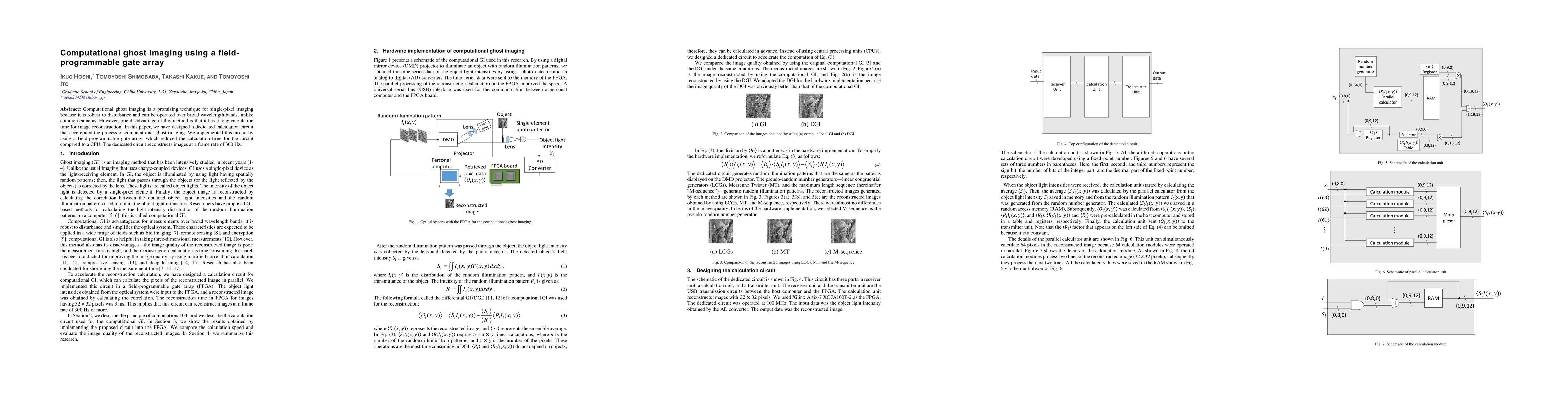 This paper presents a dedicated calculation circuit implemented on a field-programmable gate array (FPGA) to accelerate computational ghost imaging, significantly reducing reconstruction time compared to CPU-based methods, achieving a frame rate of 300 Hz.