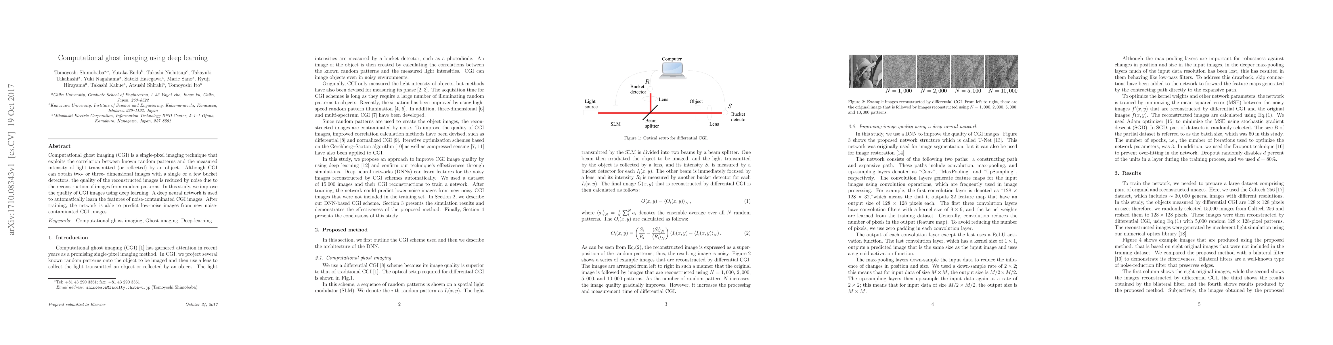 This study enhances computational ghost imaging (CGI) by employing deep learning to improve image quality. A deep neural network is trained to learn features from noise-contaminated CGI images, enabling it to predict low-noise images from new contaminated samples.