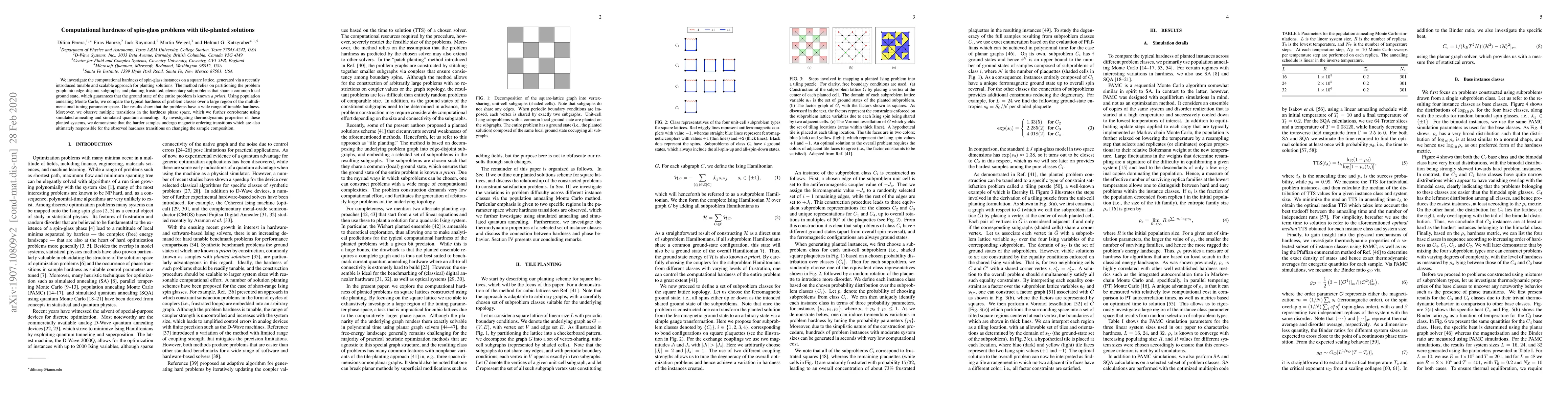 This paper explores the computational complexity of spin-glass problems on a square lattice with planted solutions, showing a wide range of tunable hardness. It uses various annealing techniques to identify multiple transitions in hardness, correlating these transitions with magnetic ordering in the systems.