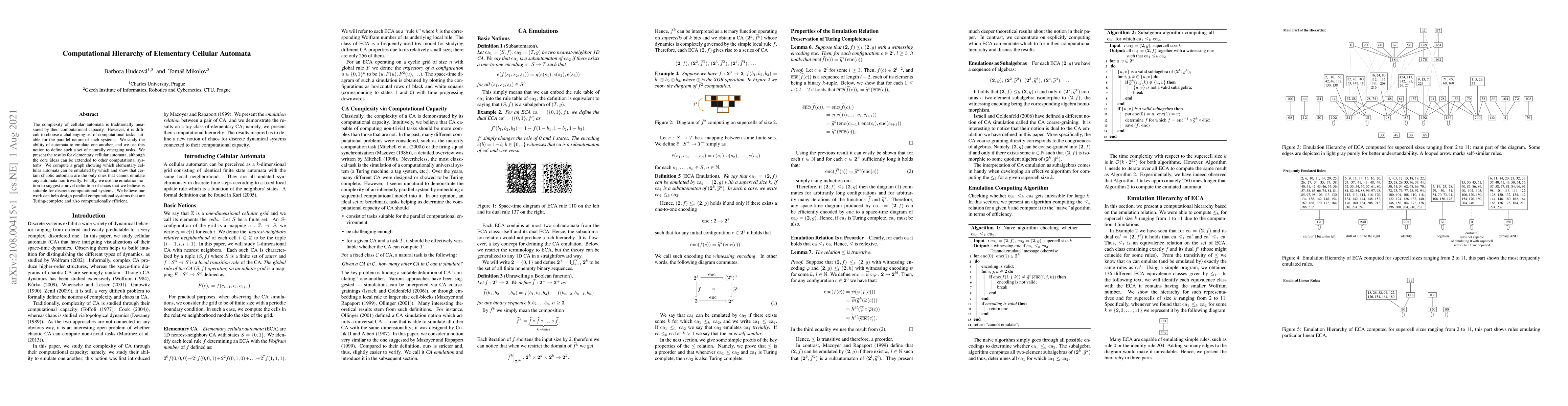 This paper explores the computational hierarchy among elementary cellular automata by examining their emulation capabilities. It identifies a set of naturally emerging tasks based on these capabilities, revealing that certain chaotic automata cannot emulate others non-trivially, leading to a new definition of chaos for discrete computational systems.