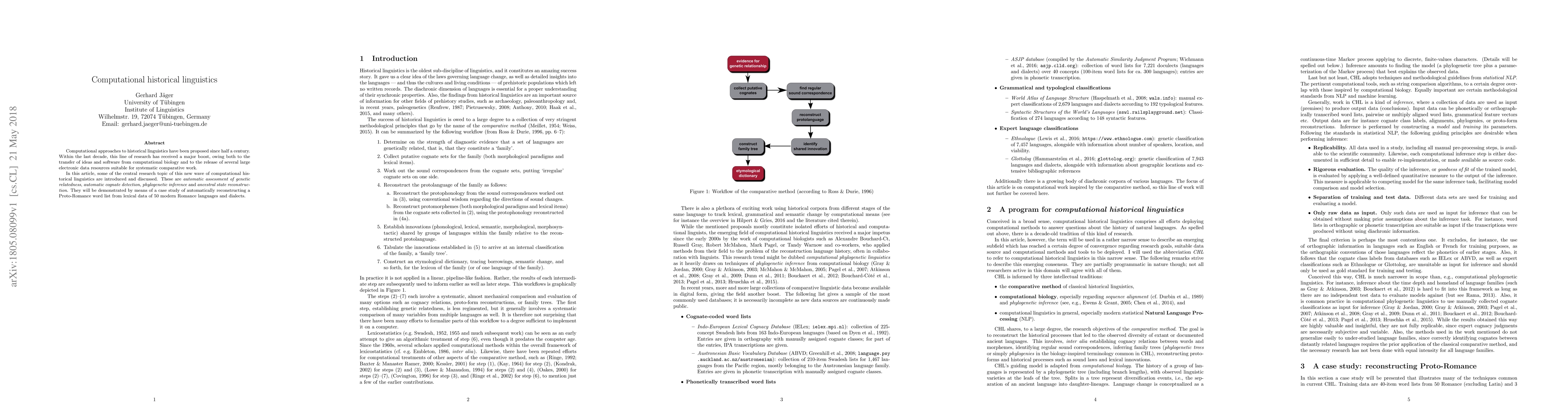 Computational approaches to historical linguistics have been proposed since half a century. Within the last decade, this line of research has received a major boost, owing both to the transfer of ideas and software from computational biology and to the release of several large electronic data resources suitable for systematic comparative work. In this article, some of the central research topic of this new wave of computational historical linguistics are introduced and discussed. These are automatic assessment of genetic relatedness, automatic cognate detection, phylogenetic inference and ancestral state reconstruction. They will be demonstrated by means of a case study of automatically reconstructing a Proto-Romance word list from lexical data of 50 modern Romance languages and dialects.