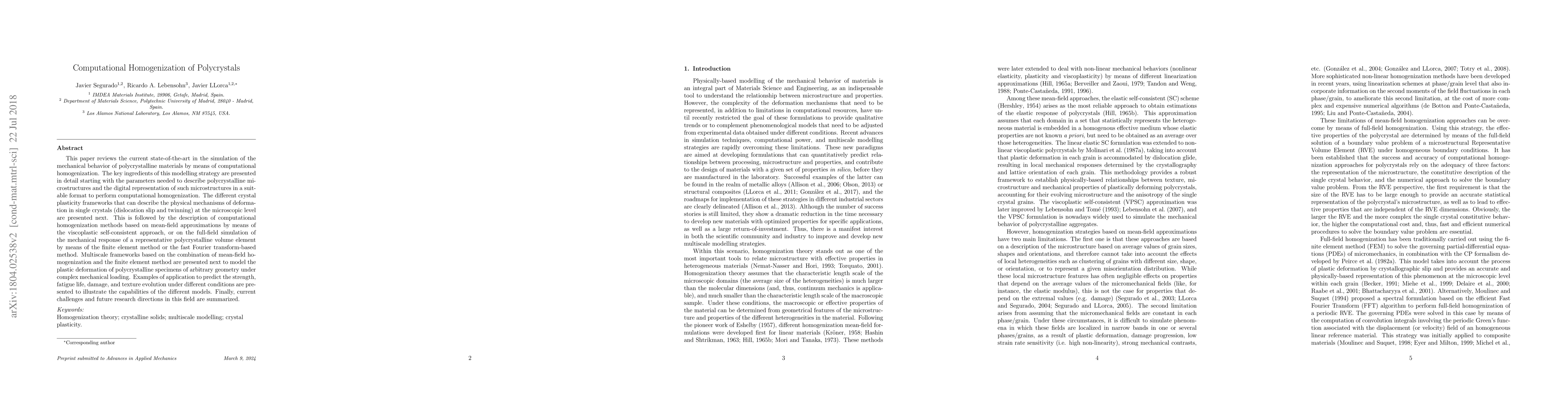 This paper reviews computational homogenization techniques for modeling the mechanical behavior of polycrystalline materials, detailing microstructure representation and crystal plasticity frameworks, and discusses multiscale methods for predicting strength, fatigue, damage, and texture evolution. It concludes with current challenges and future research directions.