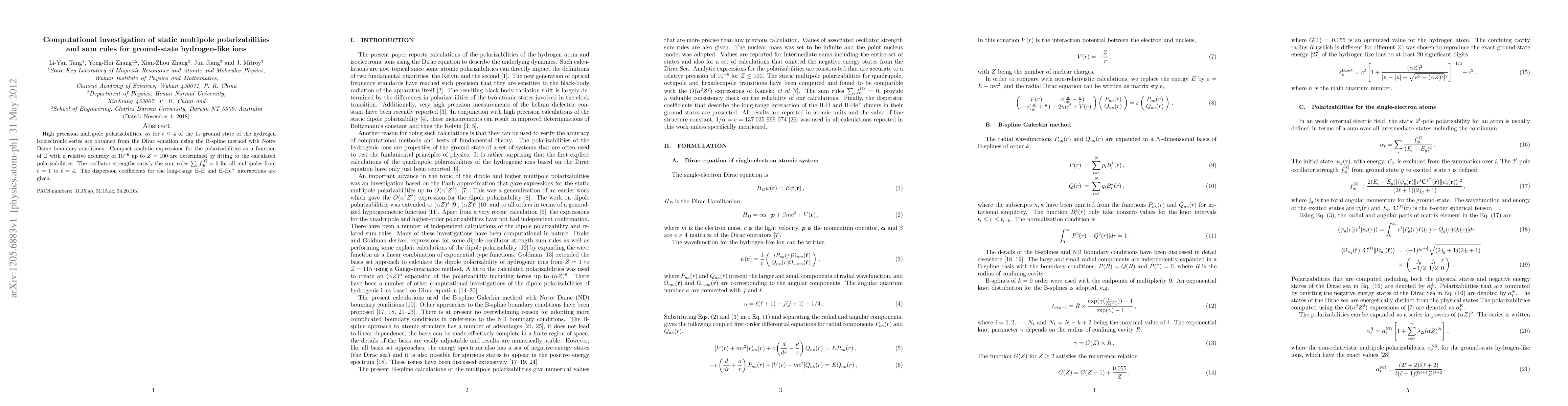 High precision multipole polarizabilities, $\alpha_{\ell}$ for $\ell \le 4$ of the $1s$ ground state of the hydrogen isoelectronic series are obtained from the Dirac equation using the B-spline method with Notre Dame boundary conditions. Compact analytic expressions for the polarizabilities as a function of $Z$ with a relative accuracy of 10$^{-6}$ up to $Z = 100$ are determined by fitting to the calculated polarizabilities. The oscillator strengths satisfy the sum rules $\sum_i f^{(\ell)}_{0i} = 0$ for all multipoles from $\ell = 1$ to $\ell = 4$. The dispersion coefficients for the long-range H-H and H-He$^+$ interactions are given.