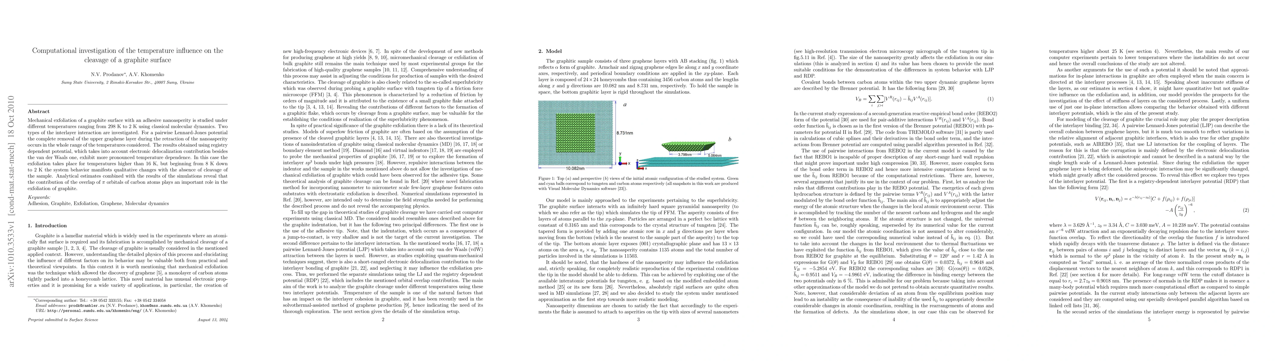 This study investigates the effect of temperature on the mechanical exfoliation of graphite using classical molecular dynamics. It finds that the cleavage process is temperature-dependent, especially when considering electronic delocalization, with significant changes occurring below 8 K.