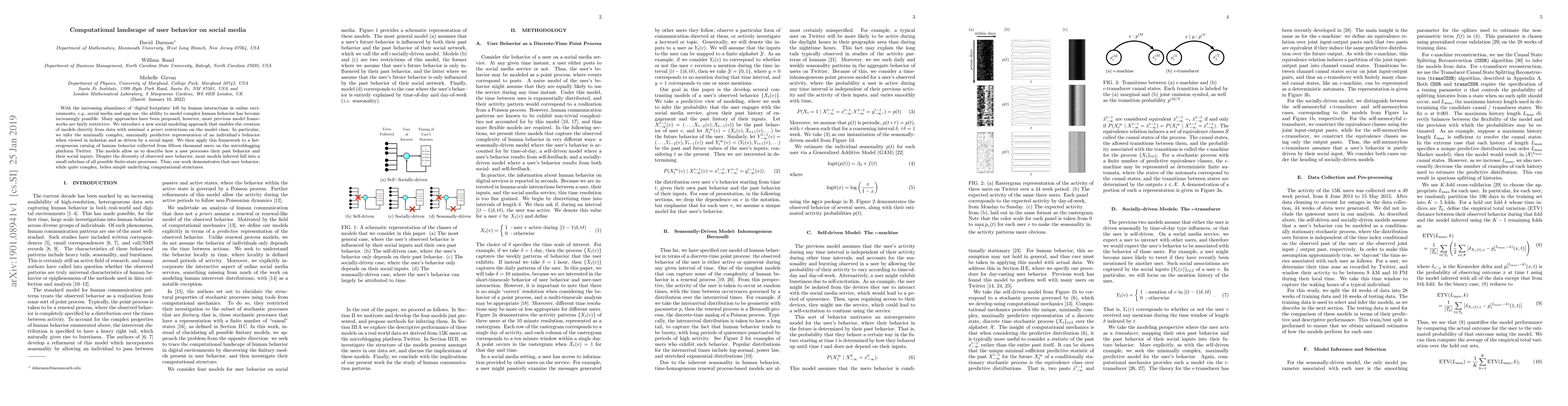 With the increasing abundance of 'digital footprints' left by human interactions in online environments, e.g., social media and app use, the ability to model complex human behavior has become increasingly possible. Many approaches have been proposed, however, most previous model frameworks are fairly restrictive. We introduce a new social modeling approach that enables the creation of models directly from data with minimal a priori restrictions on the model class. In particular, we infer the minimally complex, maximally predictive representation of an individual's behavior when viewed in isolation and as driven by a social input. We then apply this framework to a heterogeneous catalog of human behavior collected from fifteen thousand users on the microblogging platform Twitter. The models allow us to describe how a user processes their past behavior and their social inputs. Despite the diversity of observed user behavior, most models inferred fall into a small subclass of all possible finite-state processes. Thus, our work demonstrates that user behavior, while quite complex, belies simple underlying computational structures.