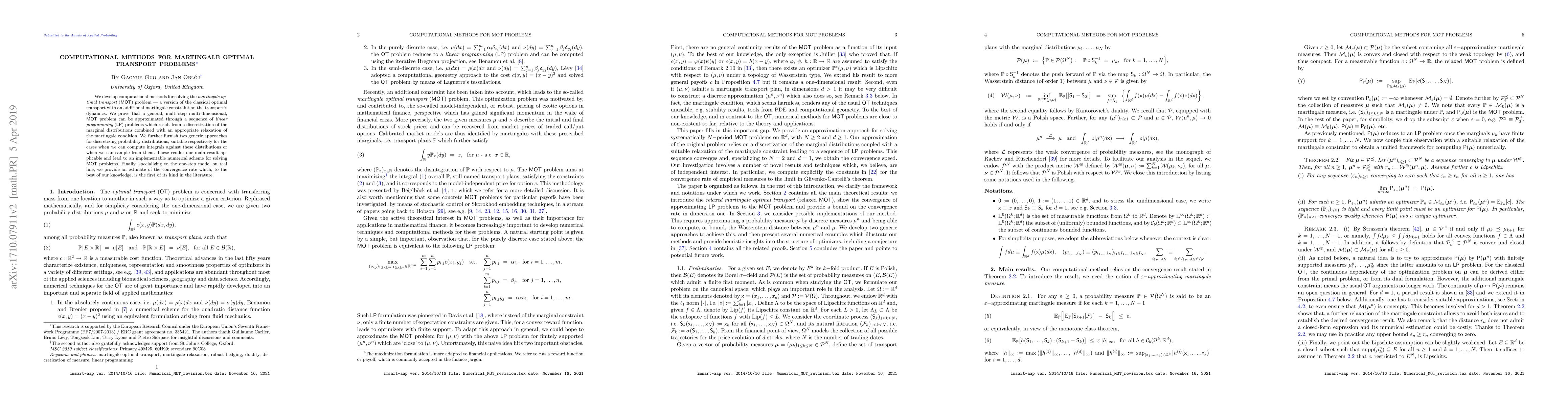 This paper develops computational methods for solving the martingale optimal transport problem, proving that the problem can be approximated via linear programming. It provides convergence rate bounds and stability results, introduces an entropic regularisation, and solves the dual problem by computing the concave envelope of scattered data.
