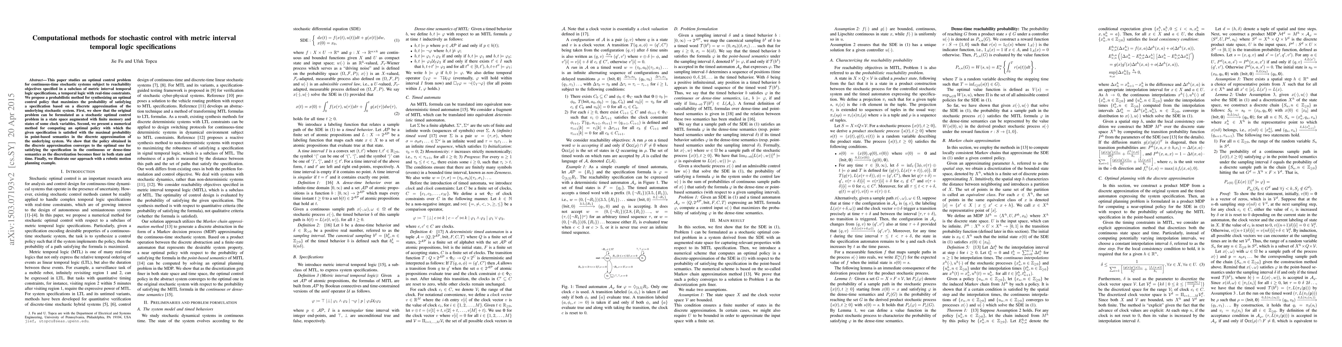 This paper develops a probabilistic method for synthesizing optimal control policies for continuous-time stochastic systems with reachability objectives defined in metric interval temporal logic. The proposed numerical approach converges to the optimal policy as discretization improves, demonstrated through a robotic motion planning example.