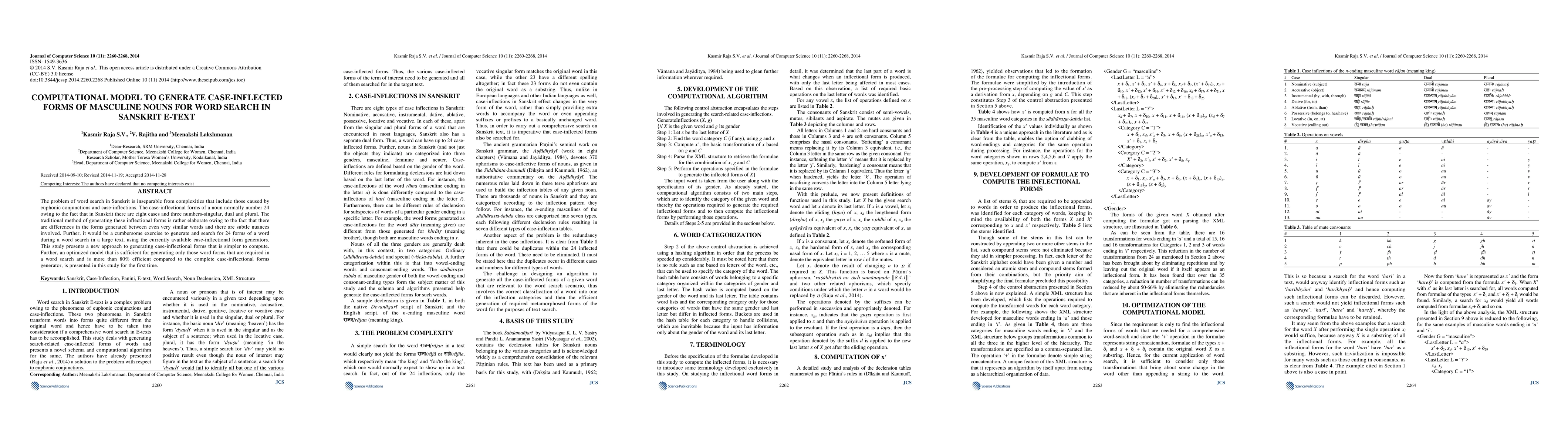 This paper introduces a computational model to generate case-inflected forms of masculine nouns for efficient word search in Sanskrit e-texts, addressing the complexities of euphonic conjunctions and case-inflections. The proposed model optimizes the generation process, achieving over 80% efficiency compared to traditional methods.