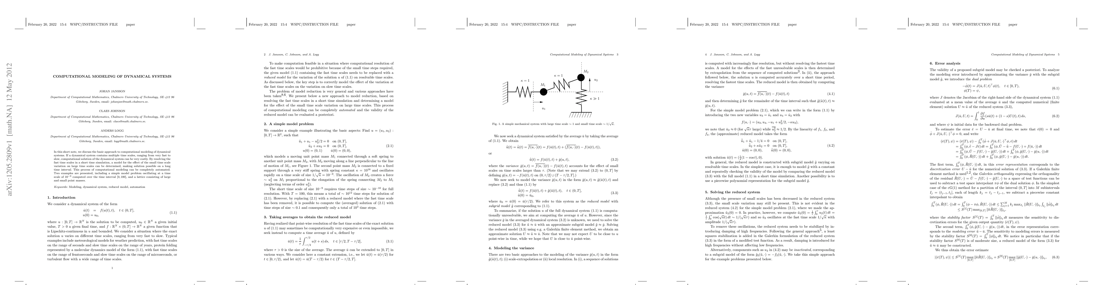 In this short note, we discuss the basic approach to computational modeling of dynamical systems. If a dynamical system contains multiple time scales, ranging from very fast to slow, computational solution of the dynamical system can be very costly. By resolving the fast time scales in a short time simulation, a model for the effect of the small time scale variation on large time scales can be determined, making solution possible on a long time interval. This process of computational modeling can be completely automated. Two examples are presented, including a simple model problem oscillating at a time scale of 1e-9 computed over the time interval [0,100], and a lattice consisting of large and small point masses.