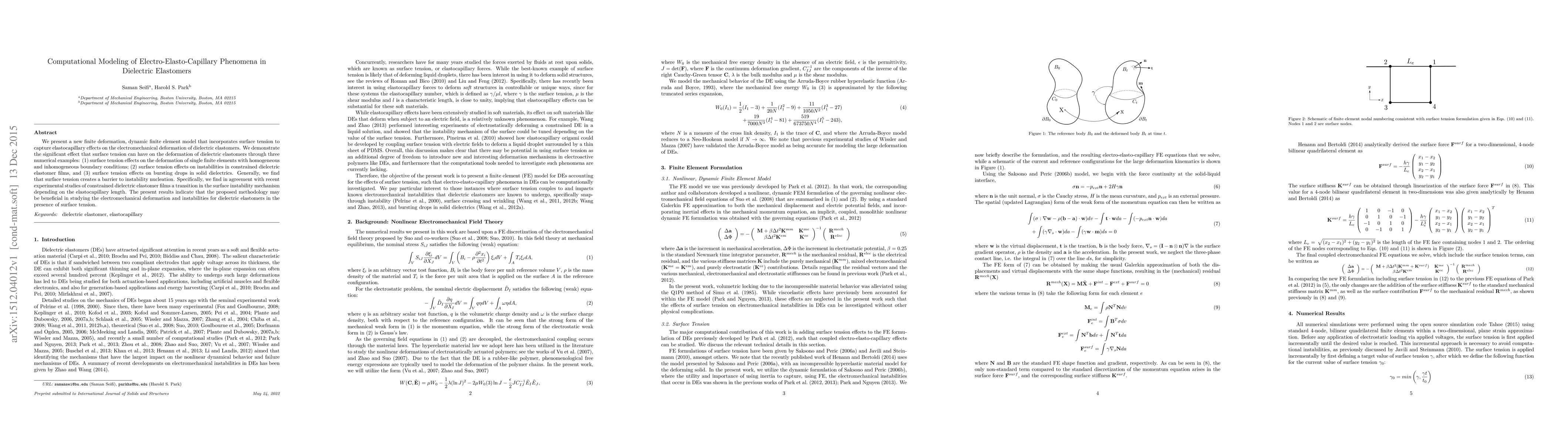 This paper introduces a finite element model that captures electro-elasto-capillary phenomena in dielectric elastomers, demonstrating that surface tension significantly influences their deformation and can inhibit instability nucleation. The model is validated through three numerical examples highlighting surface tension's role in boundary conditions, constrained films, and bursting drops.