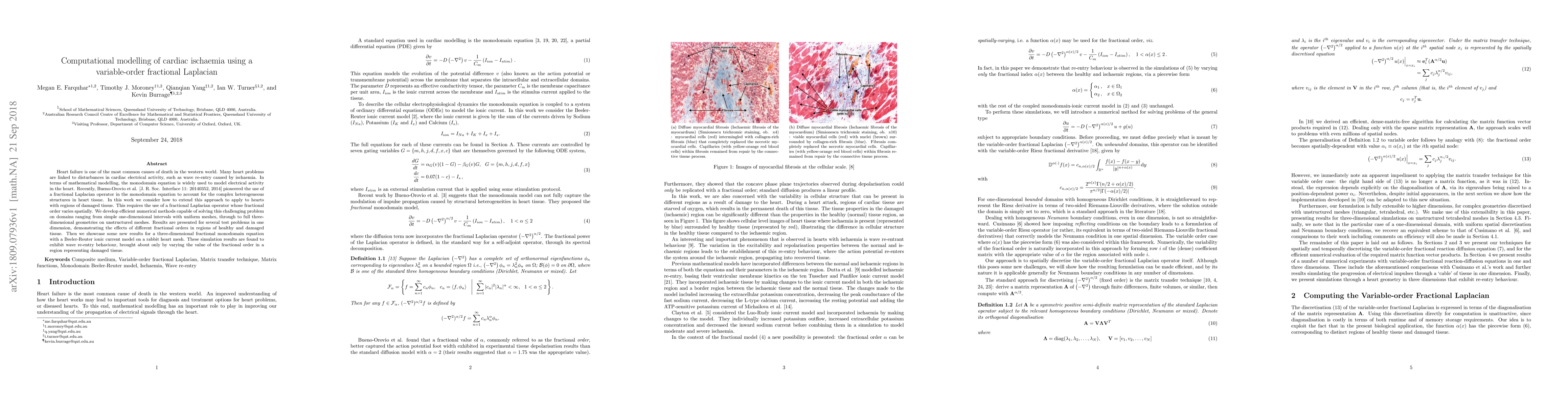 This research paper develops a new mathematical model to simulate cardiac ischaemia in hearts with damaged tissue, using a variable-order fractional Laplacian operator to account for complex structures.
