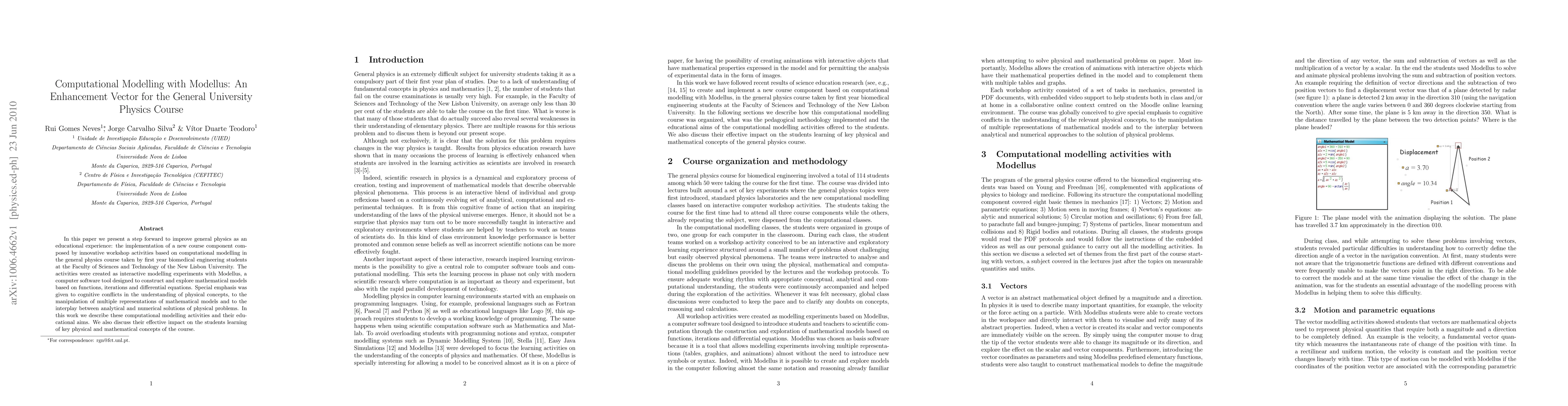 This paper introduces a new course component using computational modelling with Modellus to enhance learning of general physics in biomedical engineering students. The activities show effective impact on students' understanding of key physical concepts.