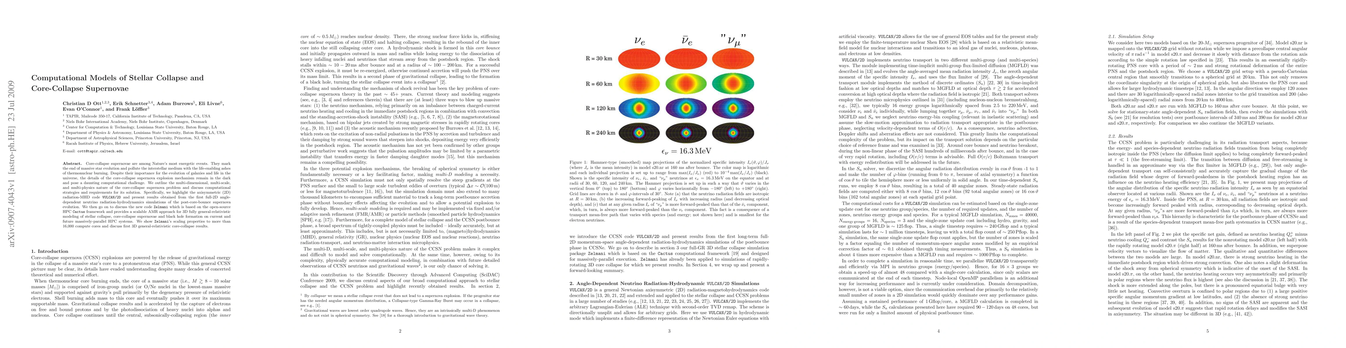This paper explores computational models for core-collapse supernovae, focusing on the challenges of simulating these energetic events. It highlights the VULCAN/2D code for 2D neutrino radiation-hydrodynamics simulations and introduces the new Zelmani code for scalable, 3D, fully general-relativistic modeling, demonstrating its performance on thousands of compute cores.