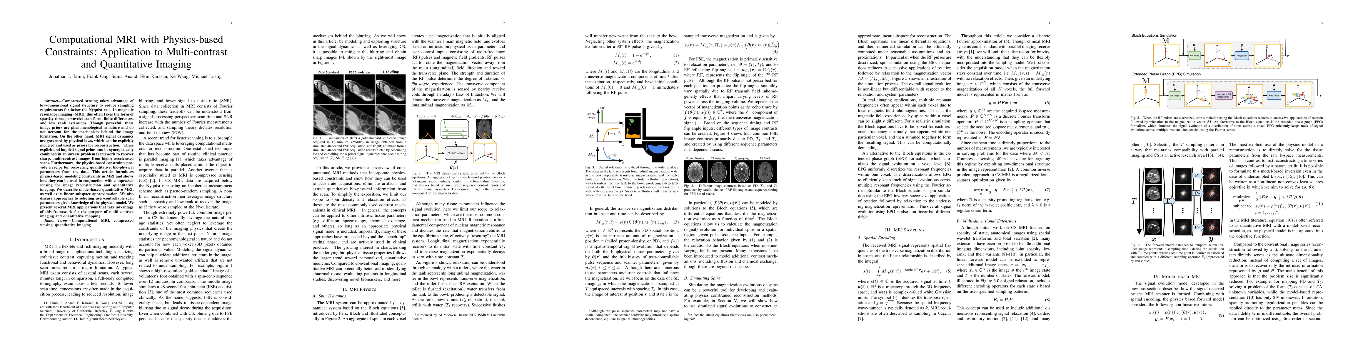 This paper explores the integration of physics-based constraints with compressed sensing in MRI to enhance multi-contrast and quantitative imaging. It demonstrates how combining explicit physical models with phenomenological image priors can reconstruct sharp images from accelerated scans and derive quantitative bio-physical parameters.