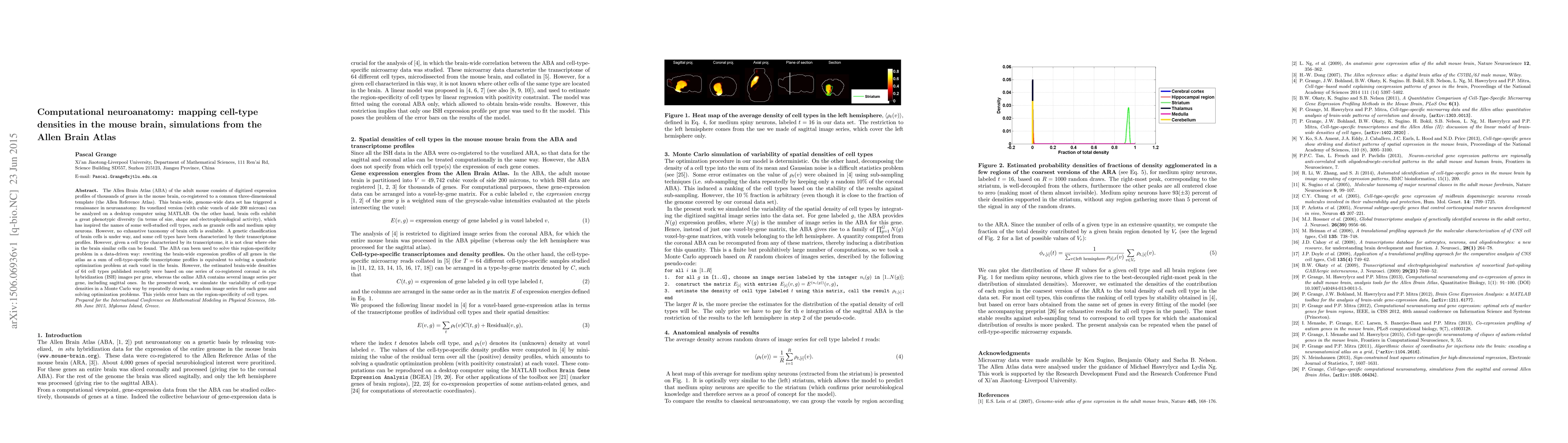 This paper explores computational neuroanatomy using the Allen Brain Atlas to map cell-type densities in the mouse brain. It simulates variability in cell-type density estimates through Monte Carlo methods, providing error bars for region-specificity of different cell types.