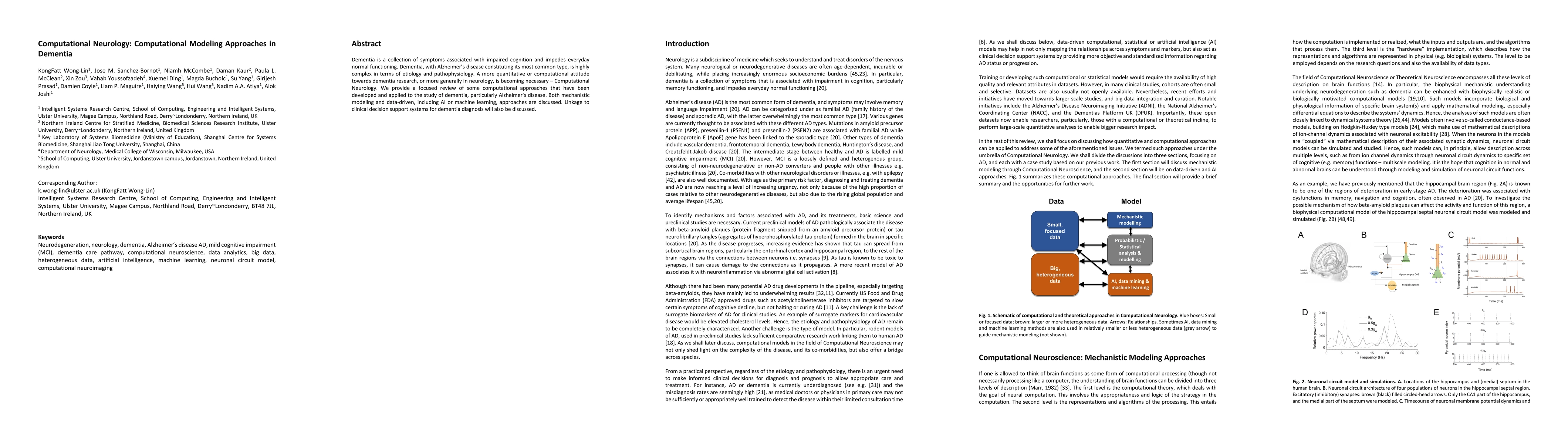 This paper reviews computational modeling approaches in dementia research, focusing on Alzheimer's disease. It discusses both mechanistic and data-driven models, including AI and machine learning, and their potential to support clinical decision-making for dementia diagnosis.