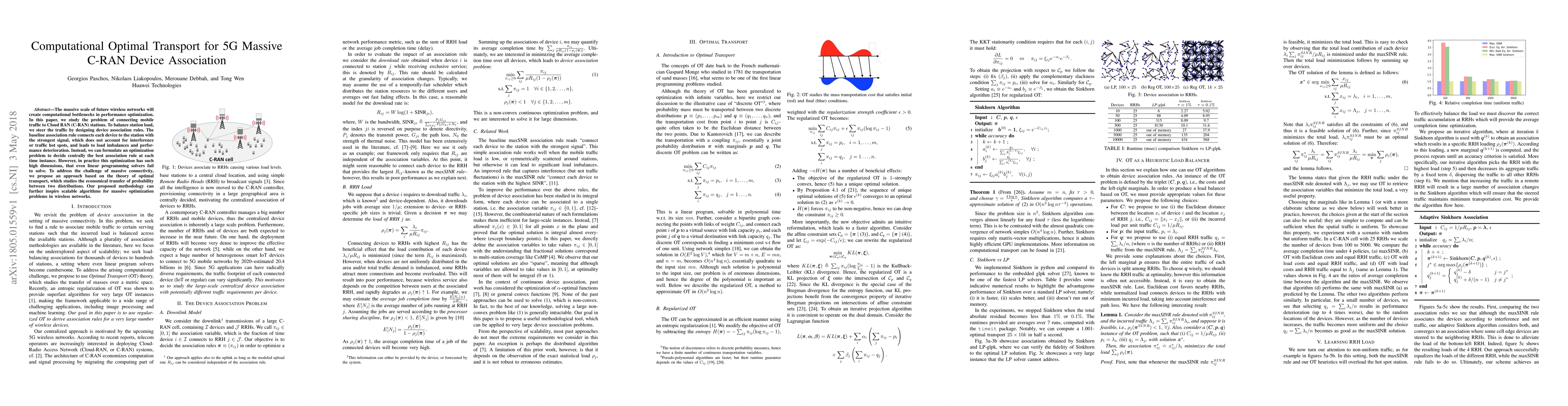 The massive scale of future wireless networks will create computational bottlenecks in performance optimization. In this paper, we study the problem of connecting mobile traffic to Cloud RAN (C-RAN) stations. To balance station load, we steer the traffic by designing device association rules. The baseline association rule connects each device to the station with the strongest signal, which does not account for interference or traffic hot spots, and leads to load imbalances and performance deterioration. Instead, we can formulate an optimization problem to decide centrally the best association rule at each time instance. However, in practice this optimization has such high dimensions, that even linear programming solvers fail to solve. To address the challenge of massive connectivity, we propose an approach based on the theory of optimal transport, which studies the economical transfer of probability between two distributions. Our proposed methodology can further inspire scalable algorithms for massive optimization problems in wireless networks.