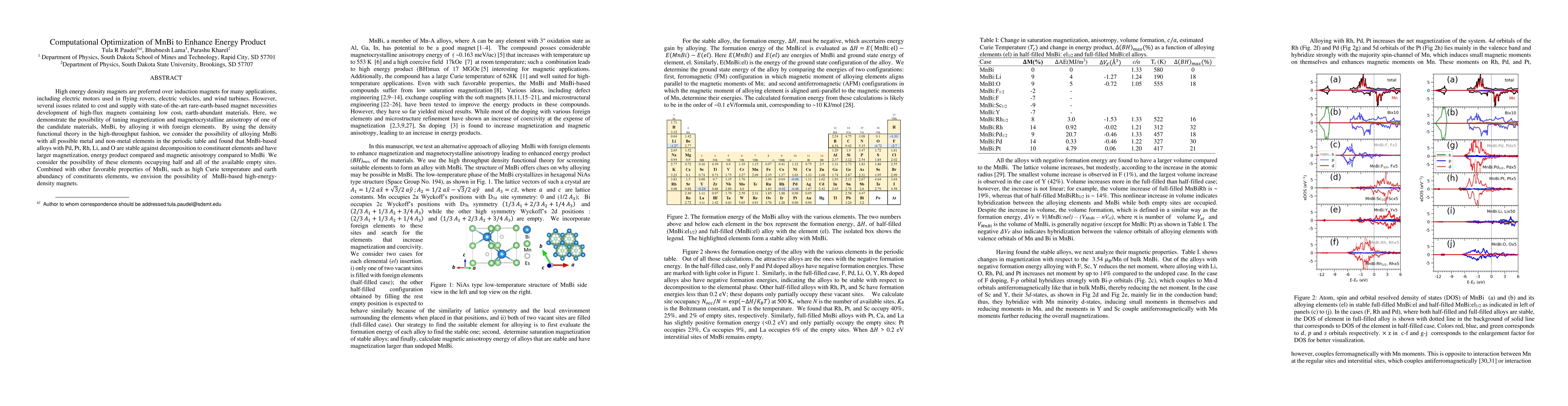 Researchers found that alloying manganese biotride (MnBi) with certain elements like Pd, Pt, Rh, Li, and O increases its magnetization, energy product, and magnetic anisotropy, making it a potential candidate for high-energy-density magnets.