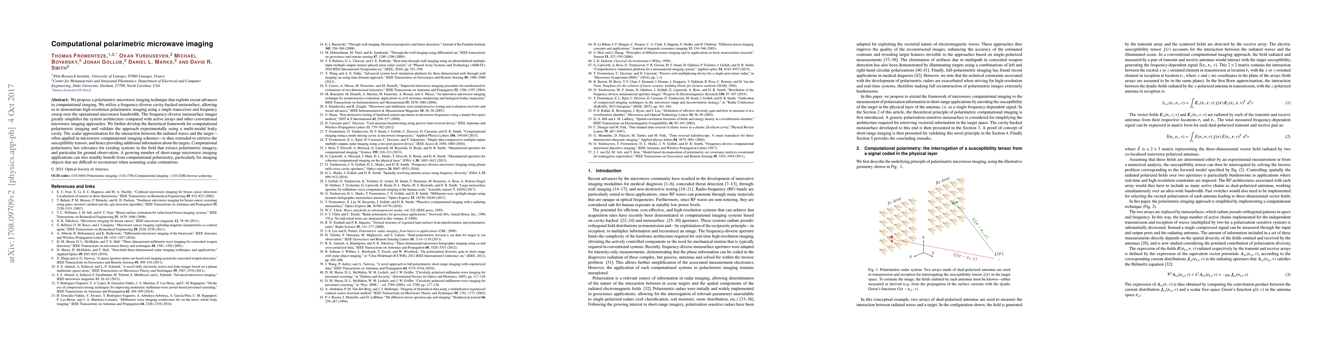 The paper introduces a novel computational polarimetric imaging technique using a frequency-diverse cavity-backed metasurface, extending scalar approximations to retrieve susceptibility tensors for enhanced polarization information.