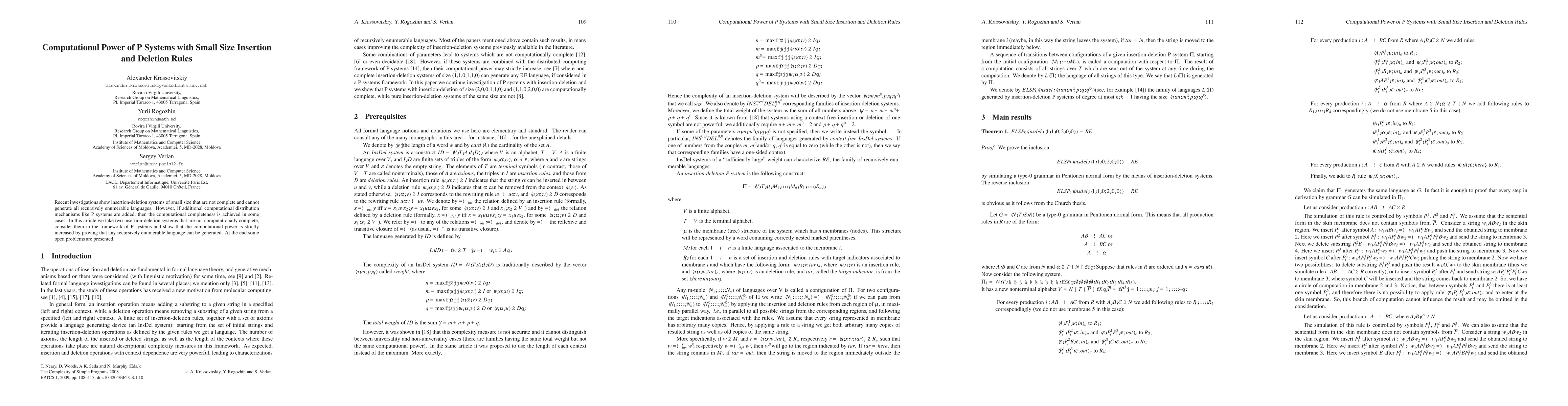 Recent investigations show insertion-deletion systems of small size that are not complete and cannot generate all recursively enumerable languages. However, if additional computational distribution mechanisms like P systems are added, then the computational completeness is achieved in some cases. In this article we take two insertion-deletion systems that are not computationally complete, consider them in the framework of P systems and show that the computational power is strictly increased by proving that any recursively enumerable language can be generated. At the end some open problems are presented.