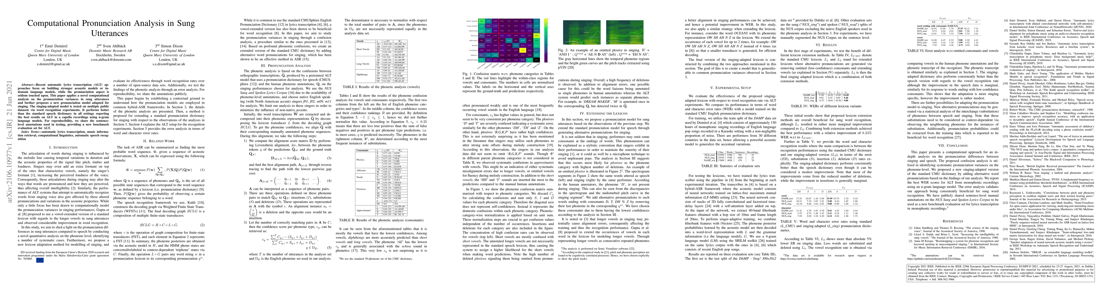 This paper introduces a novel computational analysis of pronunciation variances in sung utterances, proposing a singing-adapted pronunciation model. The model outperforms standard speech dictionaries in word recognition experiments, particularly in a cappella recordings, and offers new sentence-level annotations for ALT benchmark evaluation.