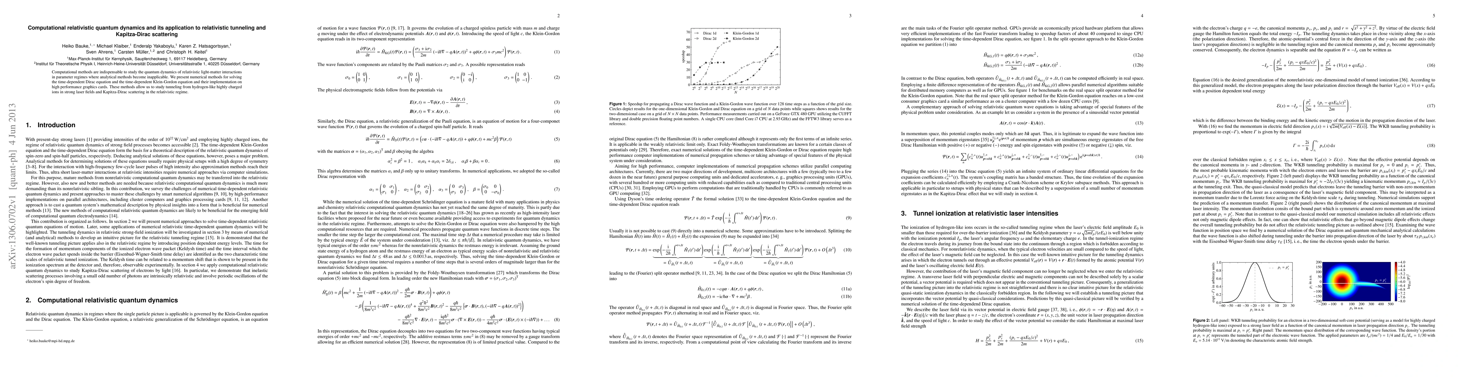 Computational methods are indispensable to study the quantum dynamics of relativistic light-matter interactions in parameter regimes where analytical methods become inapplicable. We present numerical methods for solving the time-dependent Dirac equation and the time-dependent Klein-Gordon equation and their implementation on high performance graphics cards. These methods allow us to study tunneling from hydrogen-like highly charged ions in strong laser fields and Kapitza-Dirac scattering in the relativistic regime.