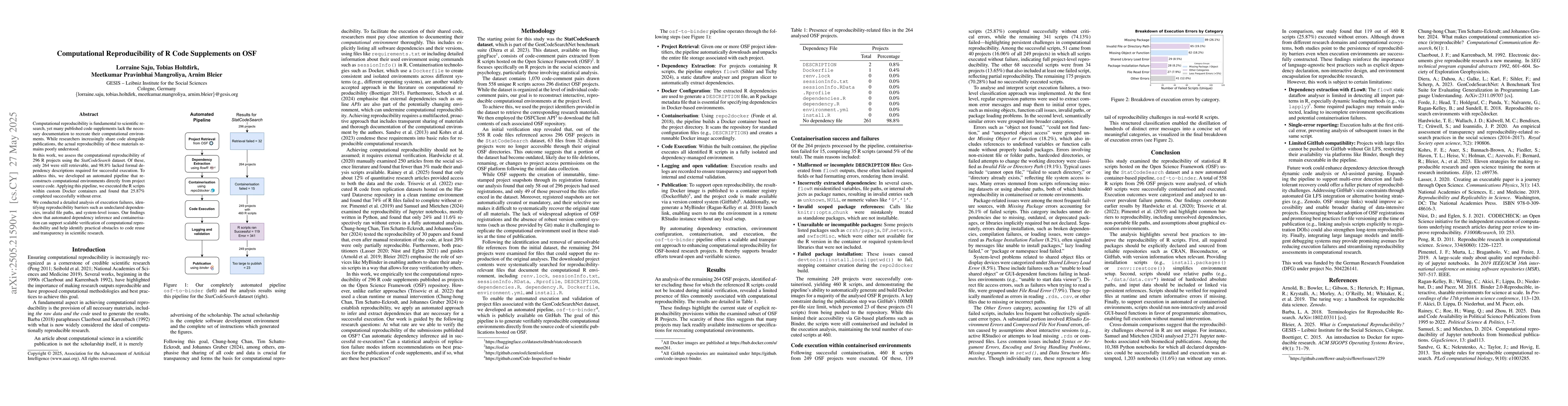 This research highlights the poor reproducibility of published code supplements and emphasizes the need for automated dependency inference and containerization to support scalable verification of computational reproducibility, enhancing code reuse and transparency in scientific research.