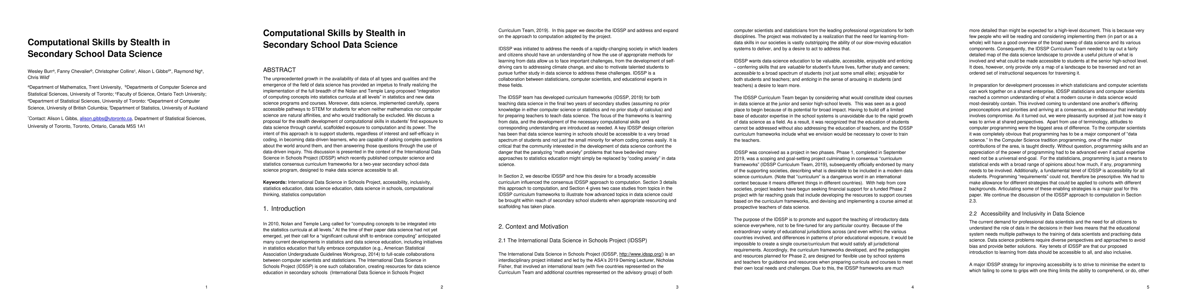 The unprecedented growth in the availability of data of all types and qualities and the emergence of the field of data science has provided an impetus to finally realizing the implementation of the full breadth of the Nolan and Temple Lang proposed integration of computing concepts into statistics curricula at all levels in statistics and new data science programs and courses. Moreover, data science, implemented carefully, opens accessible pathways to stem for students for whom neither mathematics nor computer science are natural affinities, and who would traditionally be excluded. We discuss a proposal for the stealth development of computational skills in students' first exposure to data science through careful, scaffolded exposure to computation and its power. The intent of this approach is to support students, regardless of interest and self-efficacy in coding, in becoming data-driven learners, who are capable of asking complex questions about the world around them, and then answering those questions through the use of data-driven inquiry. This discussion is presented in the context of the International Data Science in Schools Project which recently published computer science and statistics consensus curriculum frameworks for a two-year secondary school data science program, designed to make data science accessible to all.