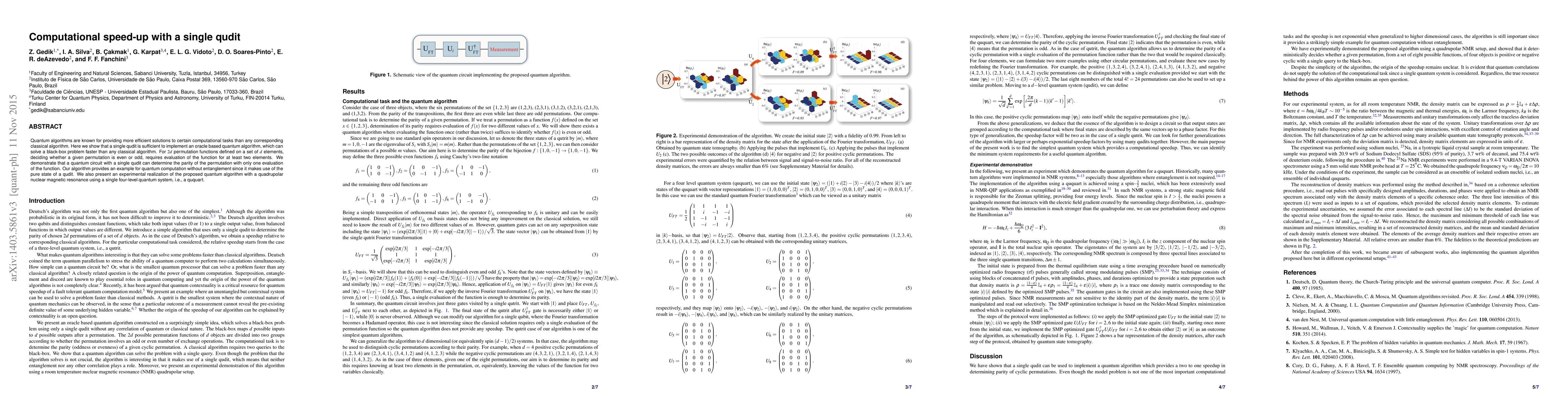 Quantum algorithms are known for providing more efficient solutions to certain computational tasks than any corresponding classical algorithm. Here we show that a single qudit is sufficient to implement an oracle based quantum algorithm, which can solve a black-box problem faster than any classical algorithm. For $2d$ permutation functions defined on a set of $d$ elements, deciding whether a given permutation is even or odd, requires evaluation of the function for at least two elements. We demonstrate that a quantum circuit with a single qudit can determine the parity of the permutation with only one evaluation of the function. Our algorithm provides an example for quantum computation without entanglement since it makes use of the pure state of a qudit. We also present an experimental realization of the proposed quantum algorithm with a quadrupolar nuclear magnetic resonance using a single four-level quantum system, i.e., a ququart.