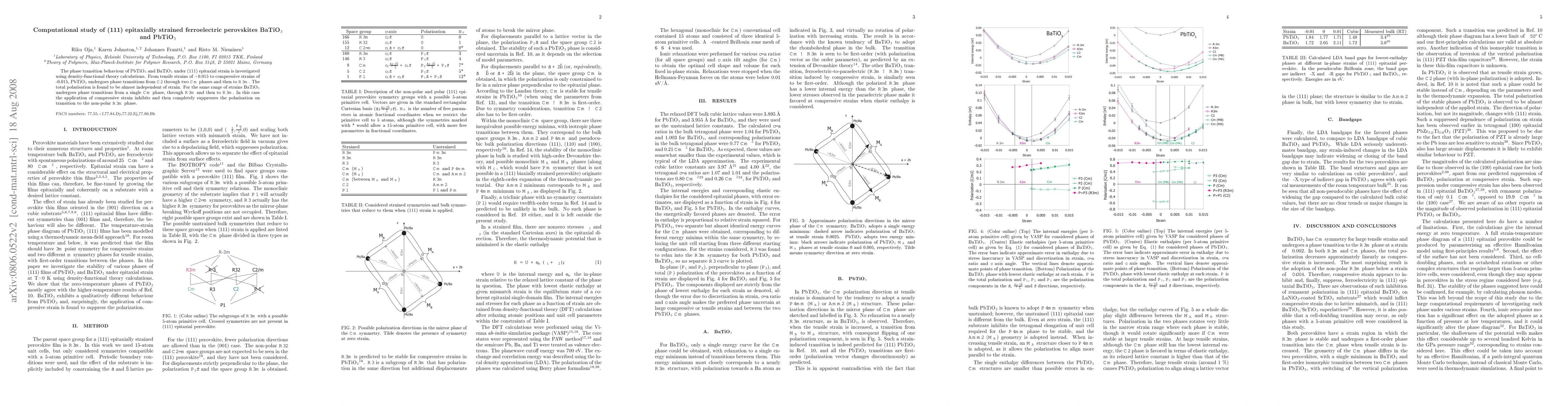 This computational study uses density-functional theory to analyze phase transitions in strained BaTiO3 and PbTiO3. PbTiO3 shifts from C2 to R3m under strain, maintaining polarization. BaTiO3 transitions from Cm to R-3m, with compressive strain suppressing polarization completely.