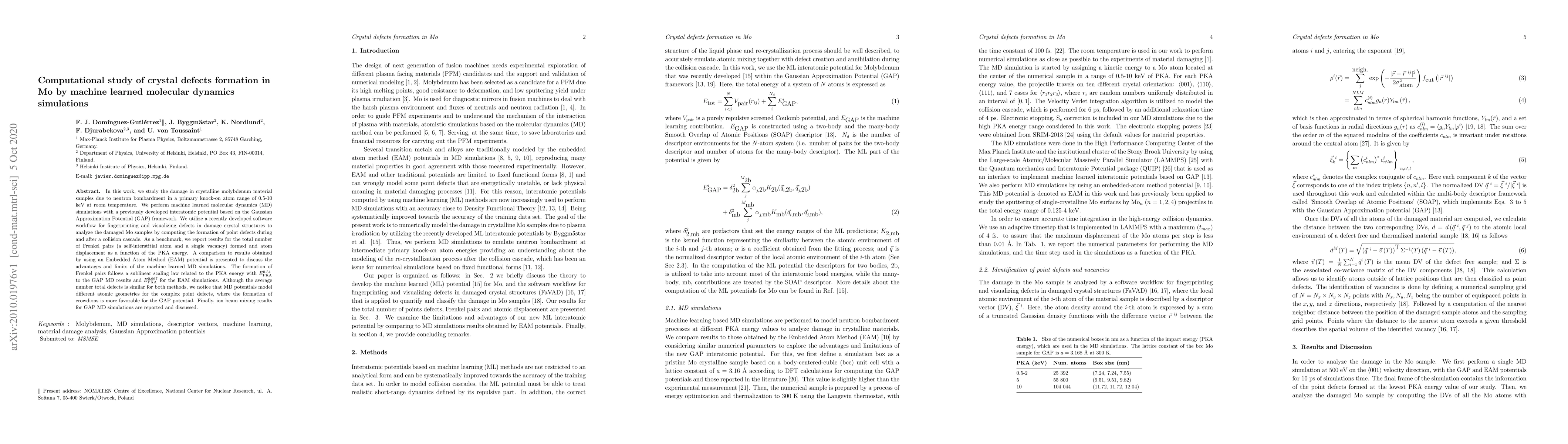 Researchers used machine learning to simulate damage in molybdenum crystal samples exposed to high-energy particles, finding that the formation of defects follows a sublinear scaling law with energy level.