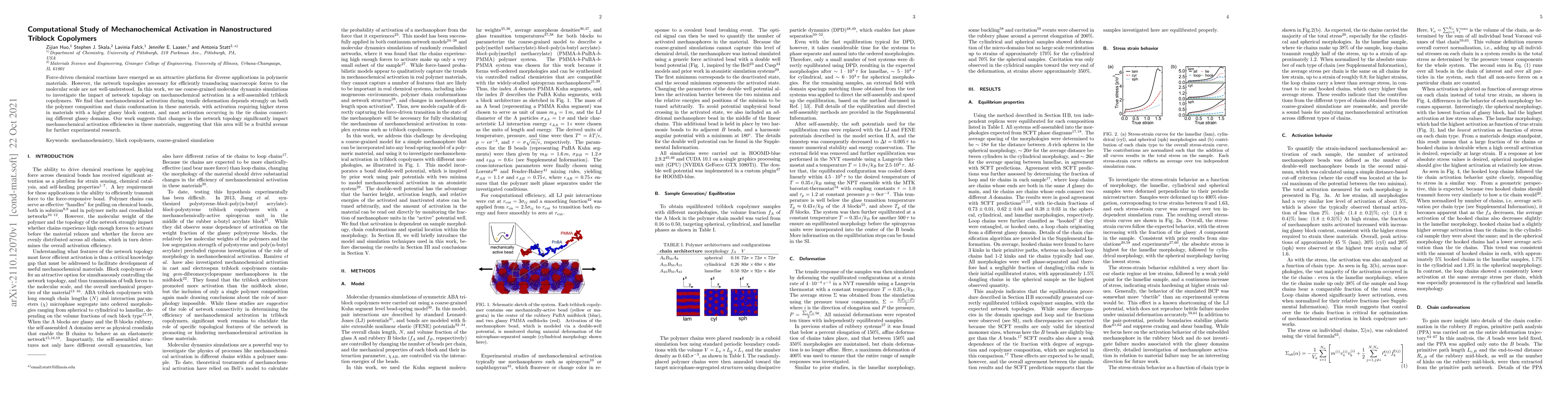 Force-driven chemical reactions have emerged as an attractive platform for diverse applications in polymeric materials. However, the network topologies necessary for efficiently transducing macroscopic forces to the molecular scale are not well-understood. In this work, we use coarse-grained molecular dynamics simulations to investigate the impact of network topology on mechanochemical activation in a self-assembled triblock copolymers. We find that mechanochemical activation during tensile deformation depends strongly on both the polymer composition and chain conformation in these materials, with activation requiring higher stress in materials with a higher glassy block content, and most activation occurring in the tie chains connecting different glassy domains. Our work suggests that changes in the network topology significantly impact mechanochemical activation efficiencies in these materials, suggesting that this area will be a fruitful avenue for further experimental research.