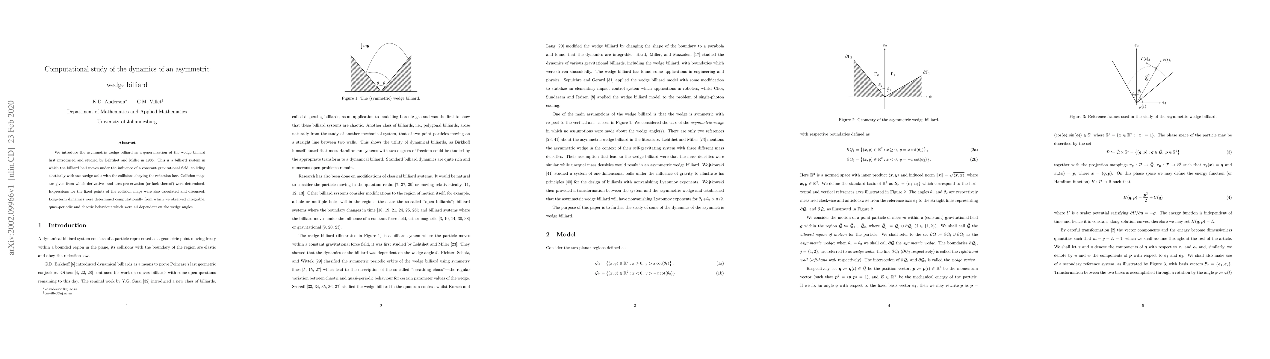 Summary: This paper explores the dynamics of an asymmetric wedge billiard, extending the original wedge billiard concept introduced by Lehtihet and Miller in 1986, through computational methods. The study aims to understand the behavior of trajectories in this generalized geometric configuration.
