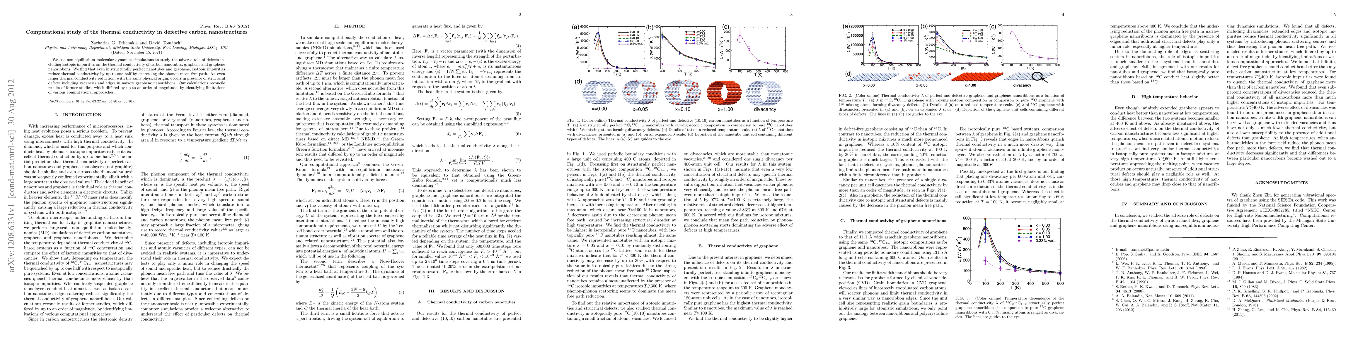 The study uses molecular dynamics simulations to reveal that isotopic impurities and structural defects significantly reduce thermal conductivity in carbon nanostructures, with isotopic impurities halving it in perfect structures and structural defects causing even greater reductions. The findings clarify discrepancies in previous studies by pinpointing computational approach limitations.