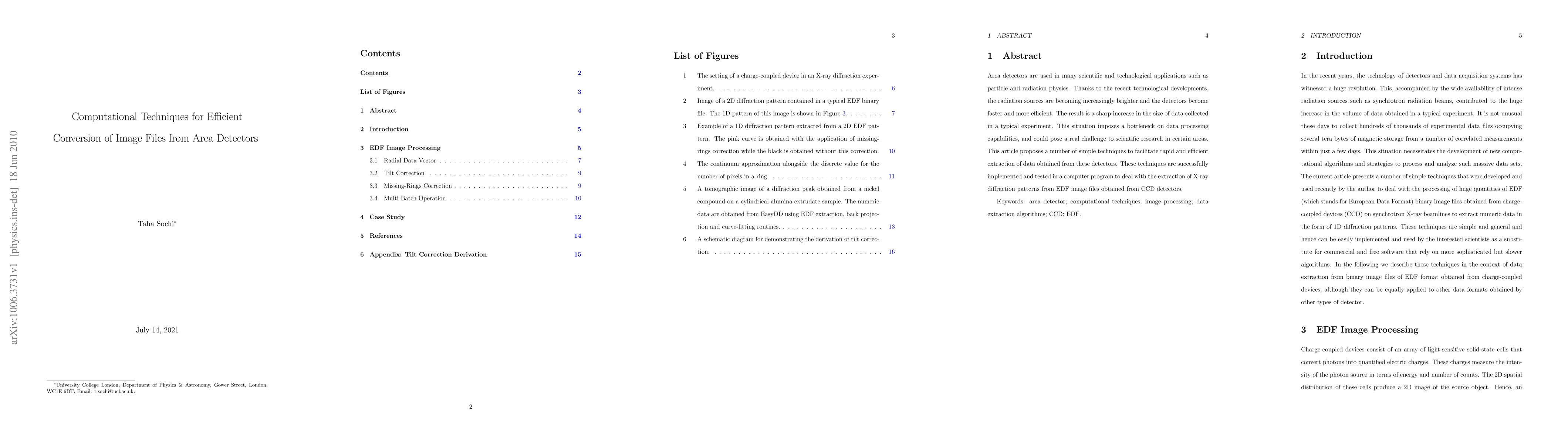 Researchers developed simple techniques to efficiently process large data from area detectors used in particle physics, enabling faster extraction of X-ray diffraction patterns.