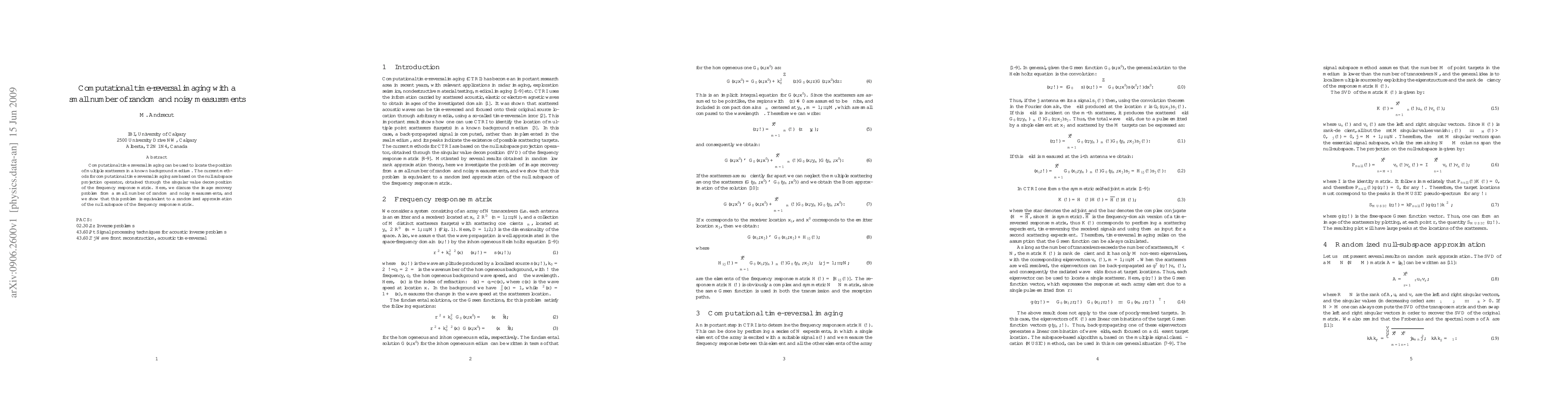 This paper explores computational time-reversal imaging using a small number of random and noisy measurements, demonstrating that image recovery is equivalent to a randomized approximation of the null subspace of the frequency response matrix.
