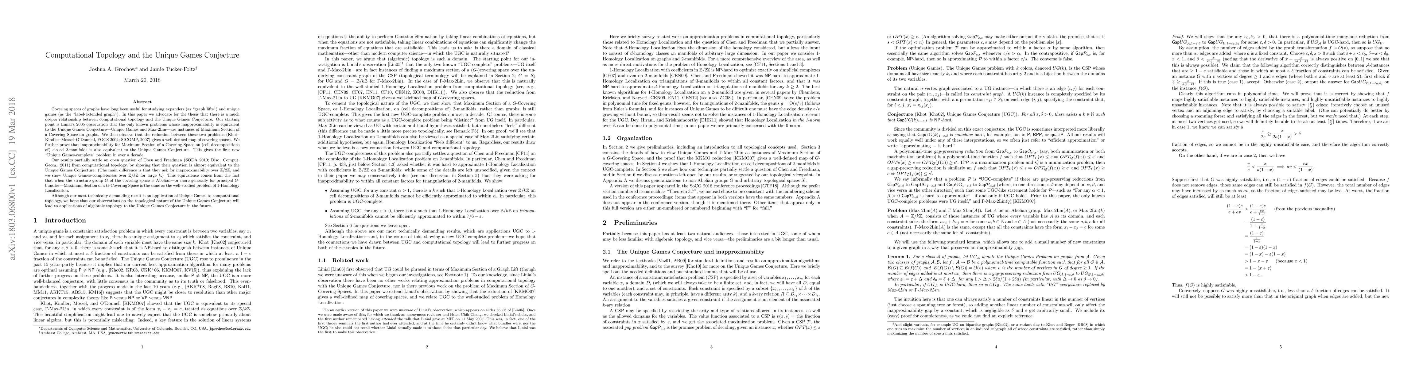 This paper explores the deep connection between computational topology and the Unique Games Conjecture, demonstrating that problems like Maximum Section of a Covering Space on graphs and closed 2-manifolds are Unique Games-complete. It also shows that the conjecture's inapproximability is equivalent to these topological problems, potentially paving the way for future applications of algebraic topology to the Unique Games Conjecture.
