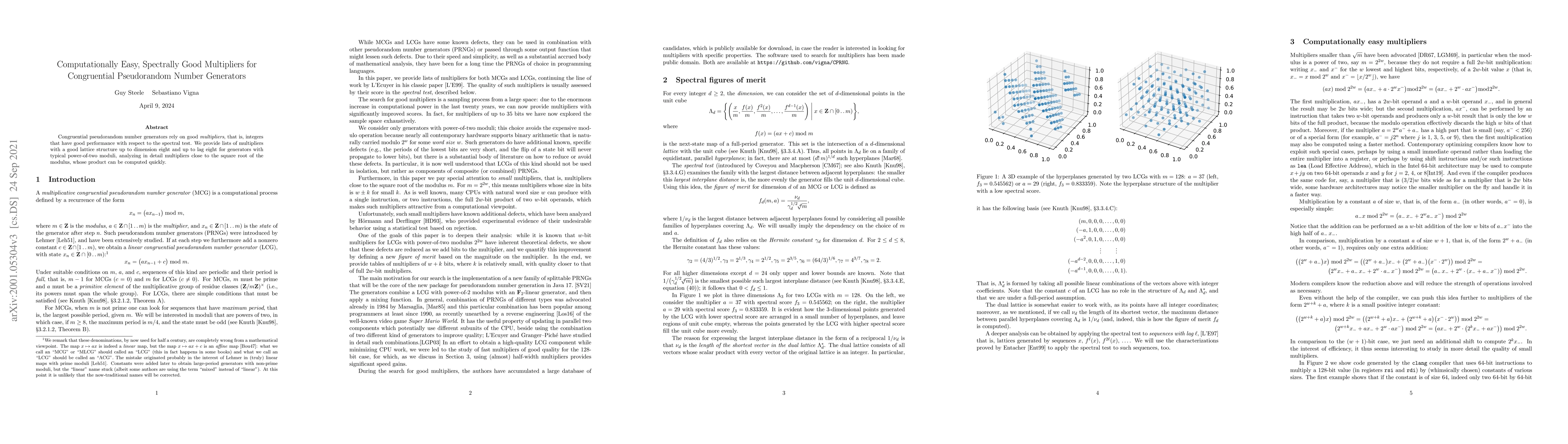 Congruential pseudorandom number generators rely on good multipliers, that is, integers that have good performance with respect to the spectral test. We provide lists of multipliers with a good lattice structure up to dimension eight and up to lag eight for generators with typical power-of-two moduli, analyzing in detail multipliers close to the square root of the modulus, whose product can be computed quickly.