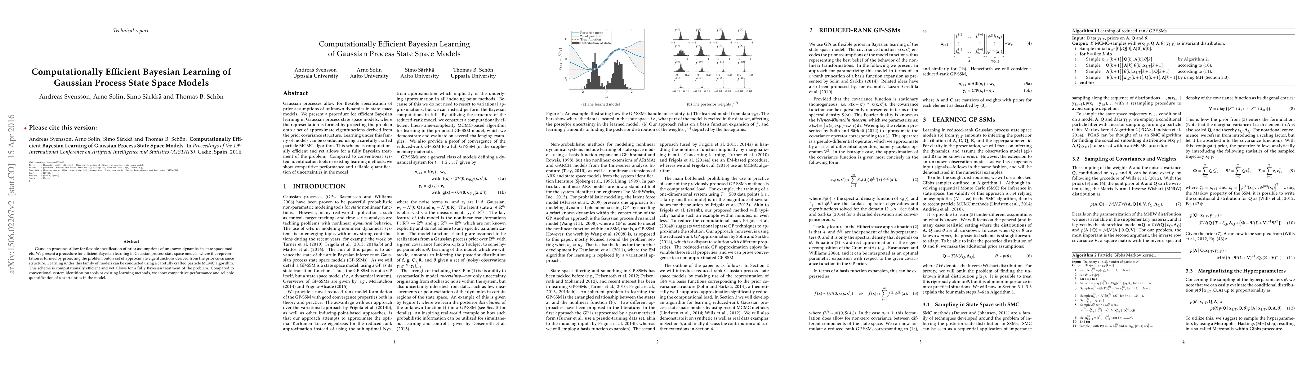 This paper introduces an efficient Bayesian learning method for Gaussian process state space models, utilizing approximate eigenfunctions to reduce computational load while maintaining a fully Bayesian treatment. The proposed particle MCMC algorithm demonstrates competitive performance and reliable uncertainty quantification compared to conventional methods.