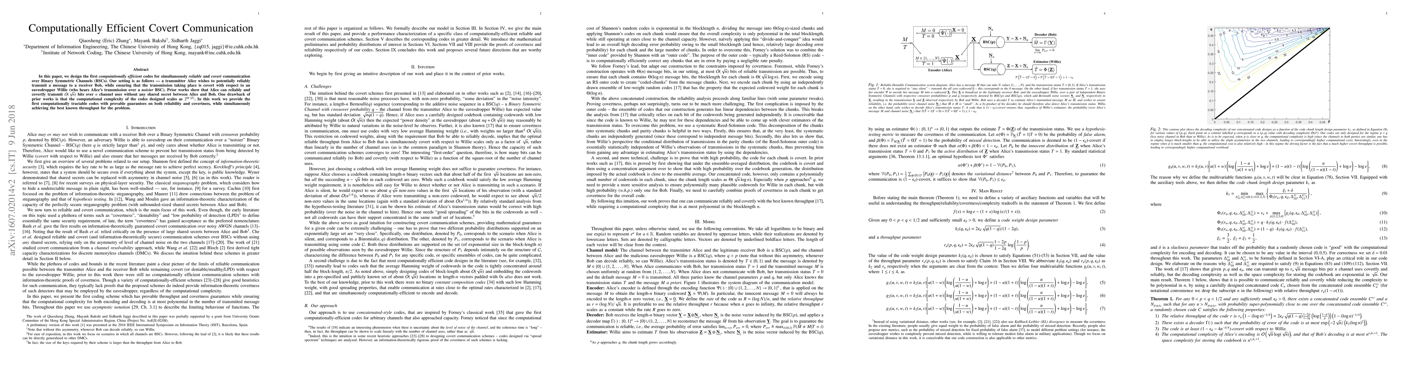 This paper designs efficient codes for reliable and covert communication over noisy channels, achieving best-known throughput while reducing computational complexity. It provides the first computationally tractable solutions with guaranteed reliability and covertness.
