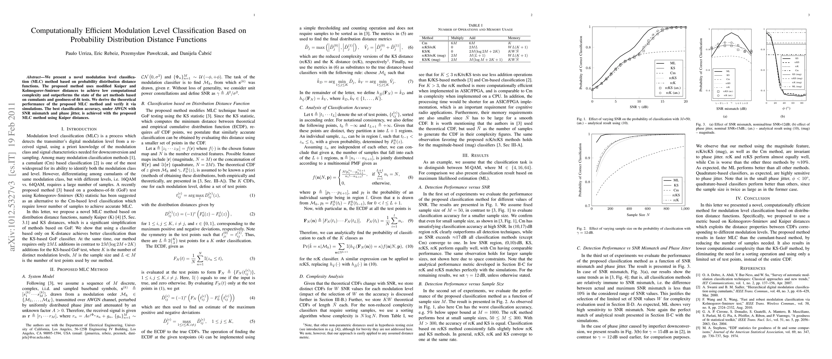 This paper proposes a computationally efficient modulation level classification method using modified Kuiper and Kolmogorov-Smirnov distances, achieving lower complexity and better accuracy than existing cumulant-based and goodness-of-fit test methods, with the best results obtained using Kuiper distances under SNR mismatch and phase jitter.