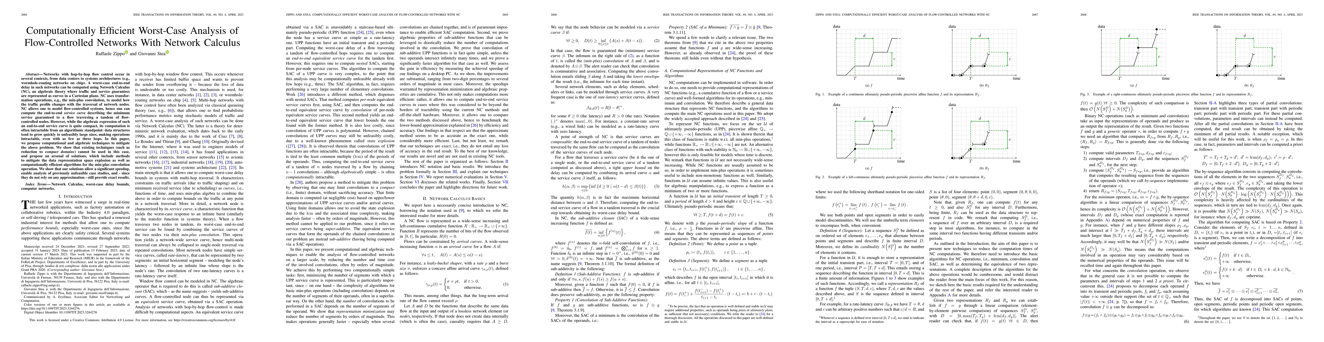 This paper proposes efficient computational techniques for worst-case analysis of flow-controlled networks using Network Calculus, addressing the challenge of large data structures and intractable min-plus convolution operations. The proposed solutions enable exact, scalable analysis of previously unfeasible network configurations.