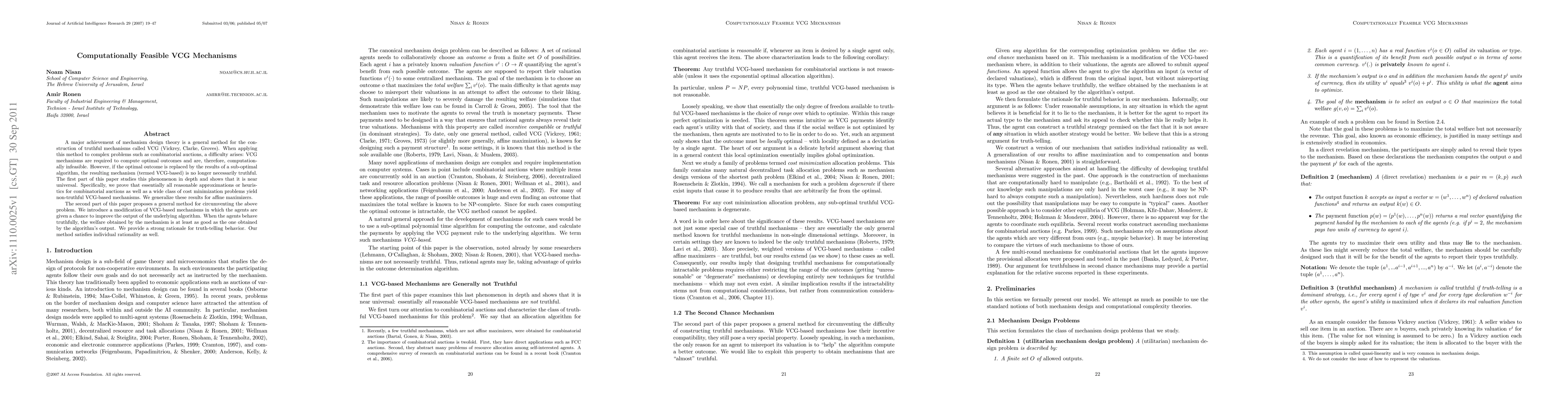 A major achievement of mechanism design theory is a general method for the construction of truthful mechanisms called VCG (Vickrey, Clarke, Groves). When applying this method to complex problems such as combinatorial auctions, a difficulty arises: VCG mechanisms are required to compute optimal outcomes and are, therefore, computationally infeasible. However, if the optimal outcome is replaced by the results of a sub-optimal algorithm, the resulting mechanism (termed VCG-based) is no longer necessarily truthful. The first part of this paper studies this phenomenon in depth and shows that it is near universal. Specifically, we prove that essentially all reasonable approximations or heuristics for combinatorial auctions as well as a wide class of cost minimization problems yield non-truthful VCG-based mechanisms. We generalize these results for affine maximizers. The second part of this paper proposes a general method for circumventing the above problem. We introduce a modification of VCG-based mechanisms in which the agents are given a chance to improve the output of the underlying algorithm. When the agents behave truthfully, the welfare obtained by the mechanism is at least as good as the one obtained by the algorithms output. We provide a strong rationale for truth-telling behavior. Our method satisfies individual rationality as well.